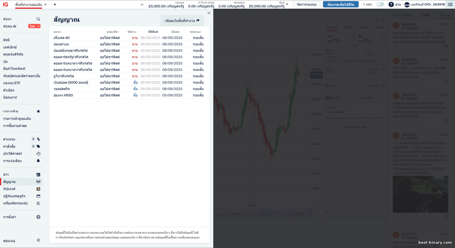 - แพลตฟอร์มเทรดขั้นสูง แพลตฟอร์มเว็บของ IG ใช้งานง่าย ปรับแต่งได้สูง และอัดแน่นด้วยอินดิเคเตอร์ ฟีดข่าว และชาร์ตจาก TradingView แอปมือถือของ IG ถูกยกย่องว่าดีเยี่ยม — จัดการสถานะ ตั้งการแจ้งเตือนราคา และใช้บอท WhatsApp ได้ มี MT4 สำหรับเวิร์กโฟลว์คลาสสิก และ ProRealTime สำหรับชาร์ตขั้นสูง อีกทั้ง ยังเชื่อมกับ TradingView ให้ส่งคำสั่งได้โดยตรงจาก TradingView ด้วยบัญชี IG ชุดเครื่องมือแบบนี้เหมาะกับผู้ที่ต้องการทั้งการส่งคำสั่งที่แข็งแรงและการวิเคราะห์ทรงพลัง