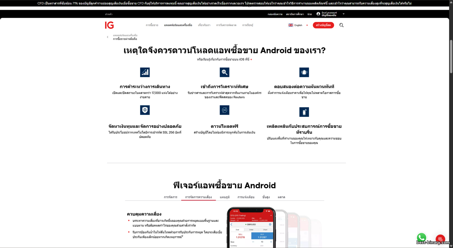- การศึกษาและงานวิจัยเข้มแข็ง IG ลงทุนกับการให้ความรู้ IG Academy เป็นหนึ่งในโปรแกรมที่ดีที่สุดในอุตสาหกรรม มีคอร์สโต้ตอบ วิดีโอ เว็บบินาร์ และแบบทดสอบ มือใหม่เรียนรู้จากพื้นฐานสู่กลยุทธ์ขั้นสูงได้ IG ยังเผยแพร่งานวิจัยตลาด: อัปเดตรายวัน สัญญาณทางเทคนิค (รวม Autochartist) และปฏิทินเศรษฐกิจ พร้อมเซสชันออนไลน์กับนักวิเคราะห์ชื่อดังเป็นประจำ