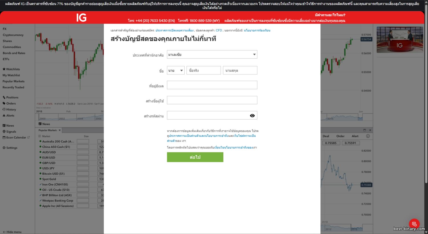 ลองนึกถึงโบรกเกอร์ที่ดำเนินงานมากว่า 40 ปีและให้คุณเข้าถึงตราสารนับพันทั่วโลก นั่นคือ IG (IG Markets) — ผู้บุกเบิกการเทรดออนไลน์และหนึ่งในผู้ให้บริการ CFD และฟอเร็กซ์รายใหญ่ของโลก บริษัทก่อตั้งในปี 1974 ที่สหราชอาณาจักรโดยนักการเงินชื่อดัง Stuart Wheeler และ มีชื่อเดิมว่า IG Index นับแต่นั้น IG เติบโตอย่างมาก: สำนักงานใหญ่ที่ลอนดอนและมีสำนักงานครอบคลุม 5 ทวีป (รวม 14 แห่งทั่วโลก) IG Group — บริษัทแม่ — จดทะเบียนในตลาดหลักทรัพย์ลอนดอนและอยู่ในดัชนี FTSE 250 นั่นหมายความว่าโบรกเกอร์เผยแพร่งบการเงินที่ตรวจสอบแล้วเป็นประจำ ซึ่งช่วยเสริมความน่าเชื่อถือ