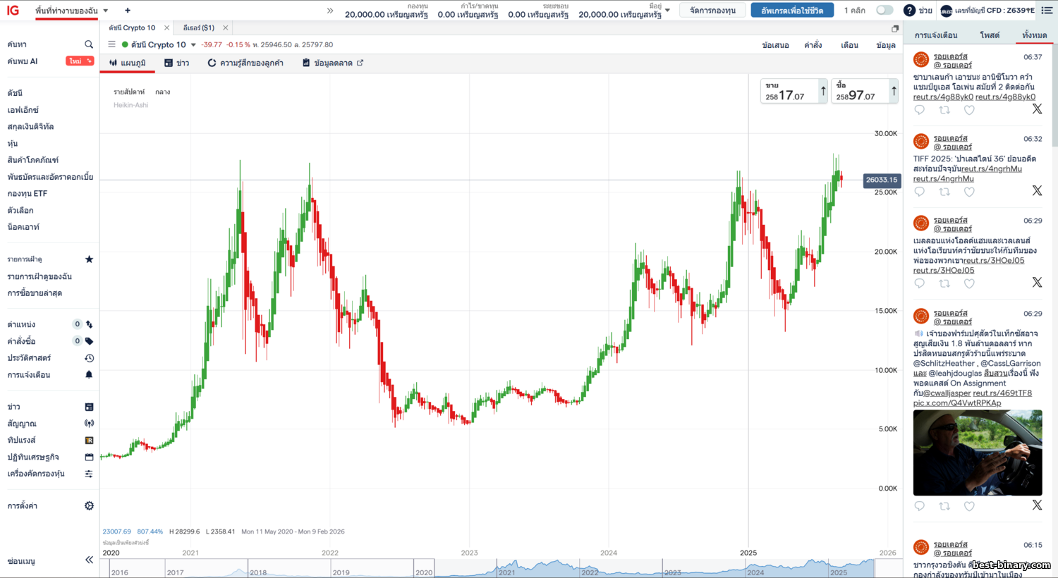 สเปรดคริปโตระดับกลาง: BTC ราว $30–40, ETH ราว ~$2 เทรดได้ 24/7 ไม่มีค่าคอมมิชชั่นการส่งคำสั่ง — ต้นทุนรวมในสเปรด มีคริปโต-CFD แบบฟอร์เวิร์ดเพื่อลดค่าพักข้ามคืนเมื่อถือยาว IG ปลอดภัยกว่าแพลตฟอร์มที่ไม่ถูกกำกับสำหรับการเก็งกำไรคริปโตแบบมีเลเวอเรจ แม้รายชื่อเหรียญจำกัด (ไม่มีเหรียญทางเลือกหางยาว)