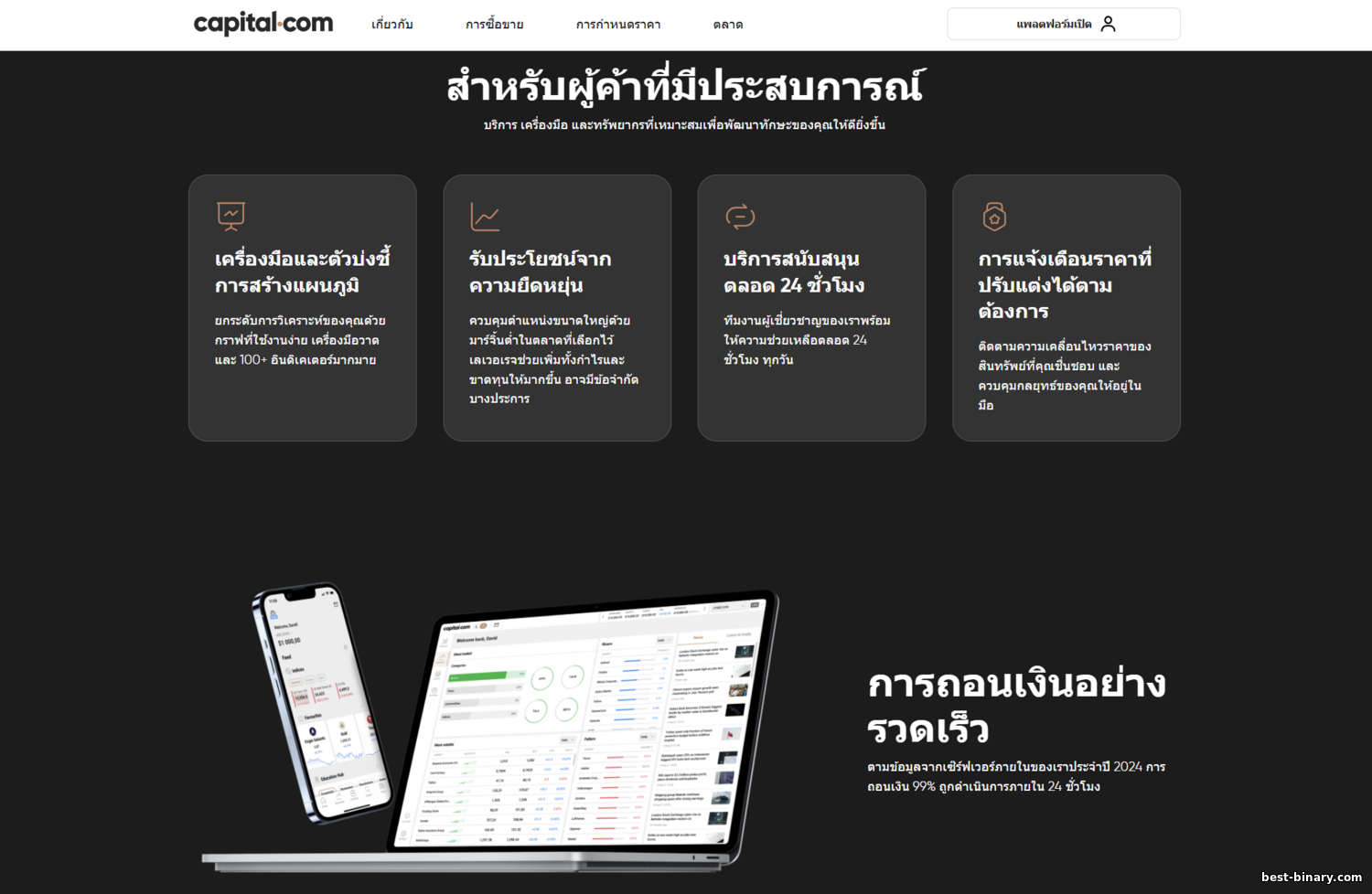 ด้วยแพลตฟอร์มที่เข้าใจง่ายและเนื้อหาการเรียนรู้ที่อุดมสมบูรณ์ โบรกเกอร์นี้จึงเหมาะกับมือใหม่อย่างมาก เกณฑ์เริ่มต้นต่ำ (ตั้งแต่ $20) และอินเทอร์เฟซตรงไปตรงมา ไปพร้อมกันนั้น Capital.com ยังมีสเปรดแข่งขันได้และการส่งคำสั่งรวดเร็ว จึงดึงดูดผู้มีประสบการณ์ด้วย เลเวอเรจเป็นไปตามข้อบังคับ (สูงสุด 1:30 ใน EU) ขณะที่สถานะ Pro พร้อมเลเวอเรจสูงกว่าเปิดให้ผู้เชี่ยวชาญที่มีคุณสมบัติตามเกณฑ์ แม้จะเน้นลูกค้ารายย่อย แต่แพลตฟอร์มก็รองรับผู้ใช้หลายกลุ่ม: ตั้งแต่ก้าวแรกในฟอเร็กซ์ไปจนถึงการเทรดหุ้นและคริปโตแบบเดย์เทรด