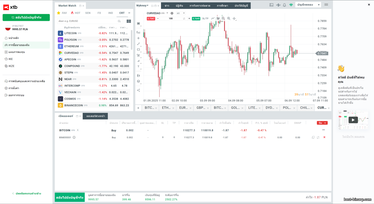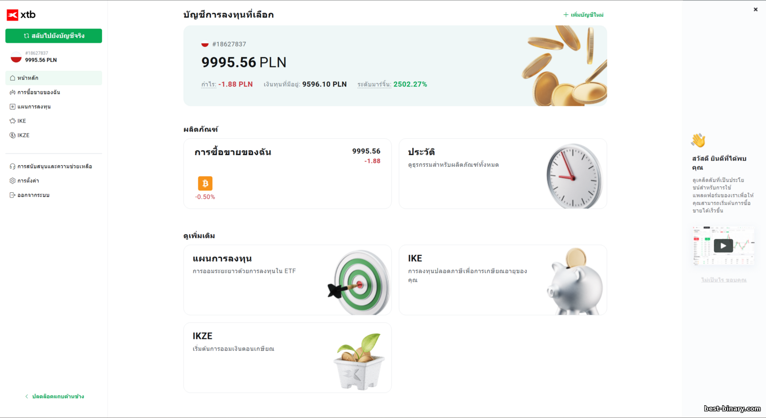 XTB ไม่ใช่แค่โบรกเกอร์ forex ทั่วไป แต่เป็นผู้ให้บริการ CFD ที่ใหญ่และมั่นคงที่สุดรายหนึ่ง บริษัทเป็นสาธารณะ — หุ้นซื้อขายในตลาดหลักทรัพย์วอร์ซอ — หมายถึงมีการเปิดเผยข้อมูลการเงินสม่ำเสมอ โปร่งใสยิ่งขึ้น XTB มีแพลตฟอร์มการเทรดของตนเอง xStation 5 และมีเครื่องมือให้เทรดนับพันรายการ — ตั้งแต่สกุลเงินและสินค้าโภคภัณฑ์ ไปจนถึงหุ้นและคริปโต XTB ยังได้รับรางวัลในอุตสาหกรรม เช่น “Best Broker in Europe” จาก Global Banking & Finance Review และ “Best Financial Educator” จาก World Finance Exchange & Brokers อีกทั้งได้รับรางวัล “Brokerage of the Year 2024” จาก Invest Cuffs ทั้งหมดนี้สะท้อนความเชื่อมั่นต่อแบรนด์