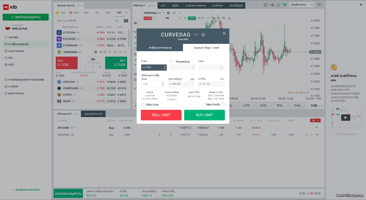ข้อจำกัด: ไม่มีออปชันที่จดทะเบียนหรือตลาดฟิวเจอร์สโดยตรง (CFDs เท่านั้น) ไม่มีการเทรดโซเชียล (คัดลอกการเทรด) — เป็นเรื่องของฟีเจอร์แพลตฟอร์มมากกว่าผลิตภัณฑ์ ไม่มีคู่คริปโต-คริปโต — มีแค่เทียบกับ USD หรือ EUR สเปรดอาจกว้างขึ้นในวันหยุดสุดสัปดาห์ แม้ตลาดคริปโตยังเปิดอยู่ คุณไม่สามารถซื้อและถอนคริปโตเป็นเหรียญได้ — มีแค่ CFDs เท่านั้น ซึ่งบางคนอาจมองว่าเป็นข้อเสีย แต่ XTB เป็นโบรกเกอร์ ไม่ใช่กระดานแลกเปลี่ยนคริปโต